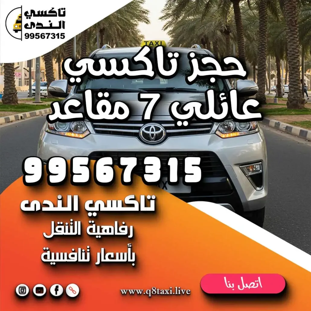 حجز تاكسي عائلي ٧ مقاعد في الكويت: دليلك الكامل لرحلات عائلية مريحة وآمنة من شركة تاكسي الندى 99567315